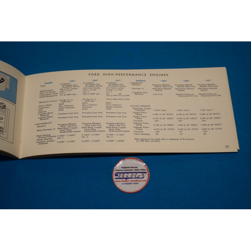 This manual covers ALL 1965 and 1964.5 Ford Cars that came with High Performance options