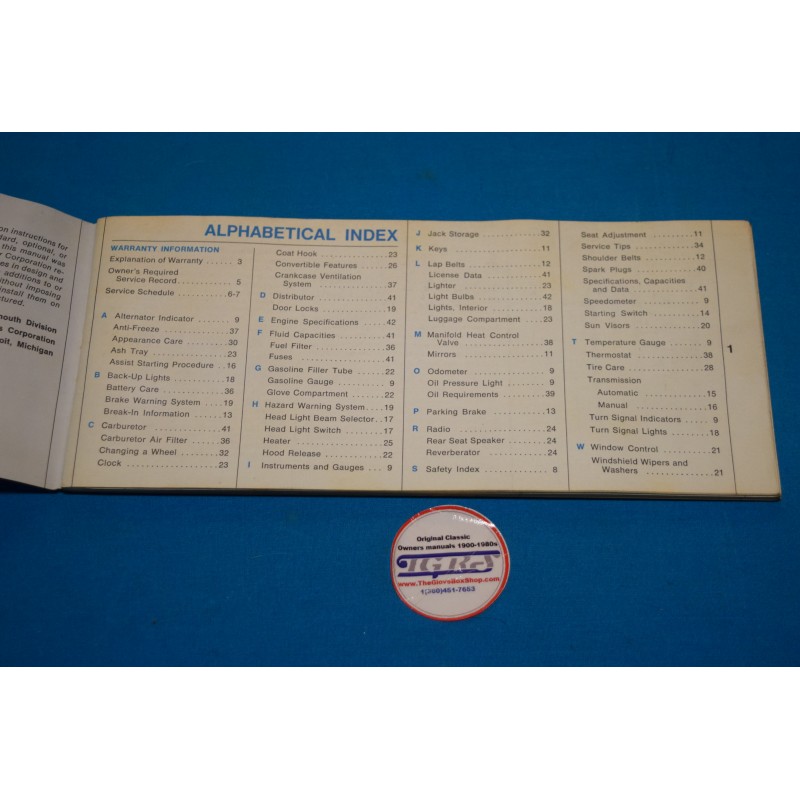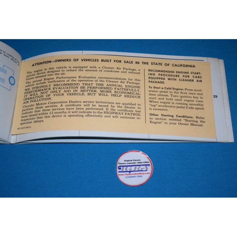 1967 Plymouth GTX owners manual